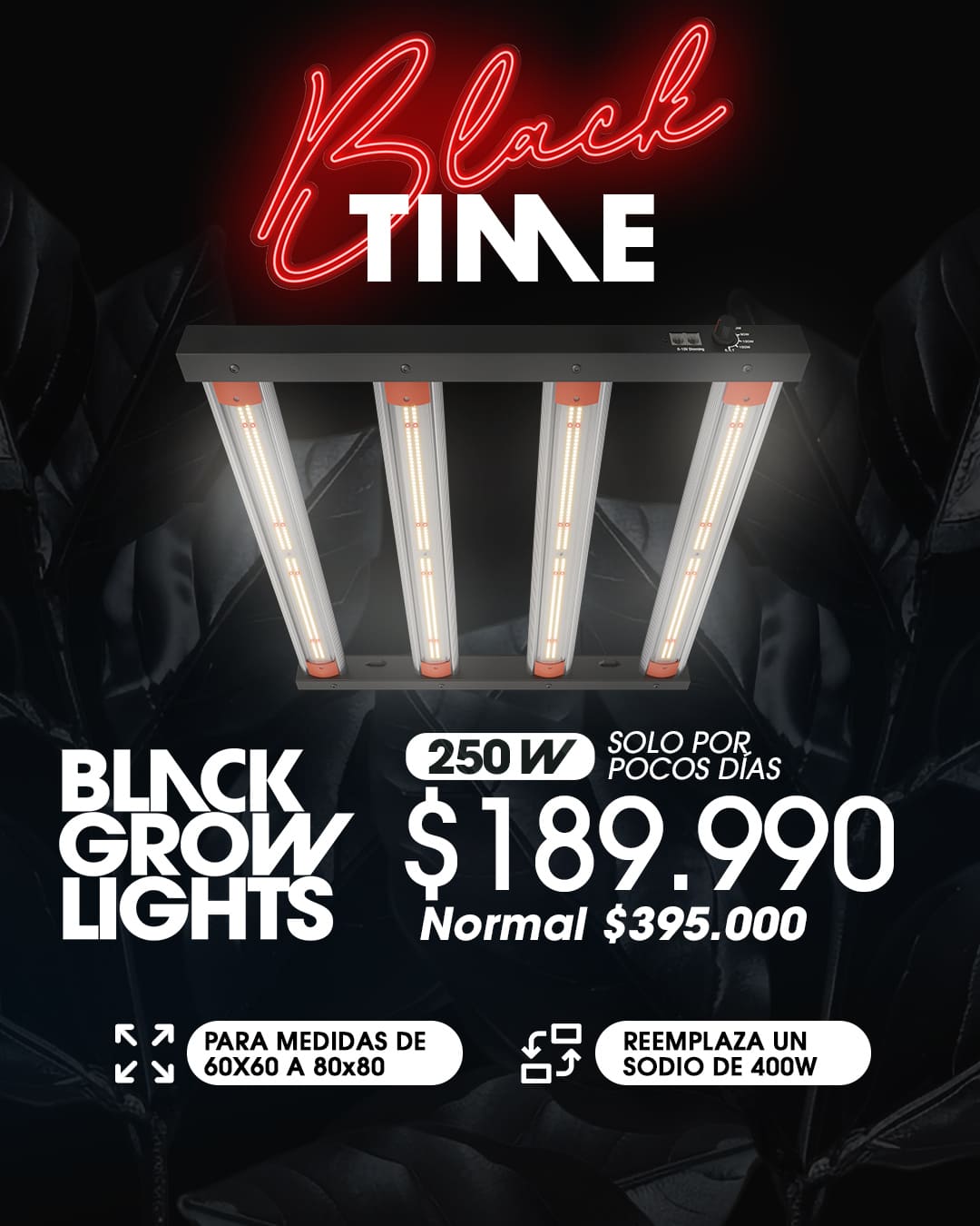 Black Grow Lights 250W Regulable | LED indoor 60x60 a 100x100