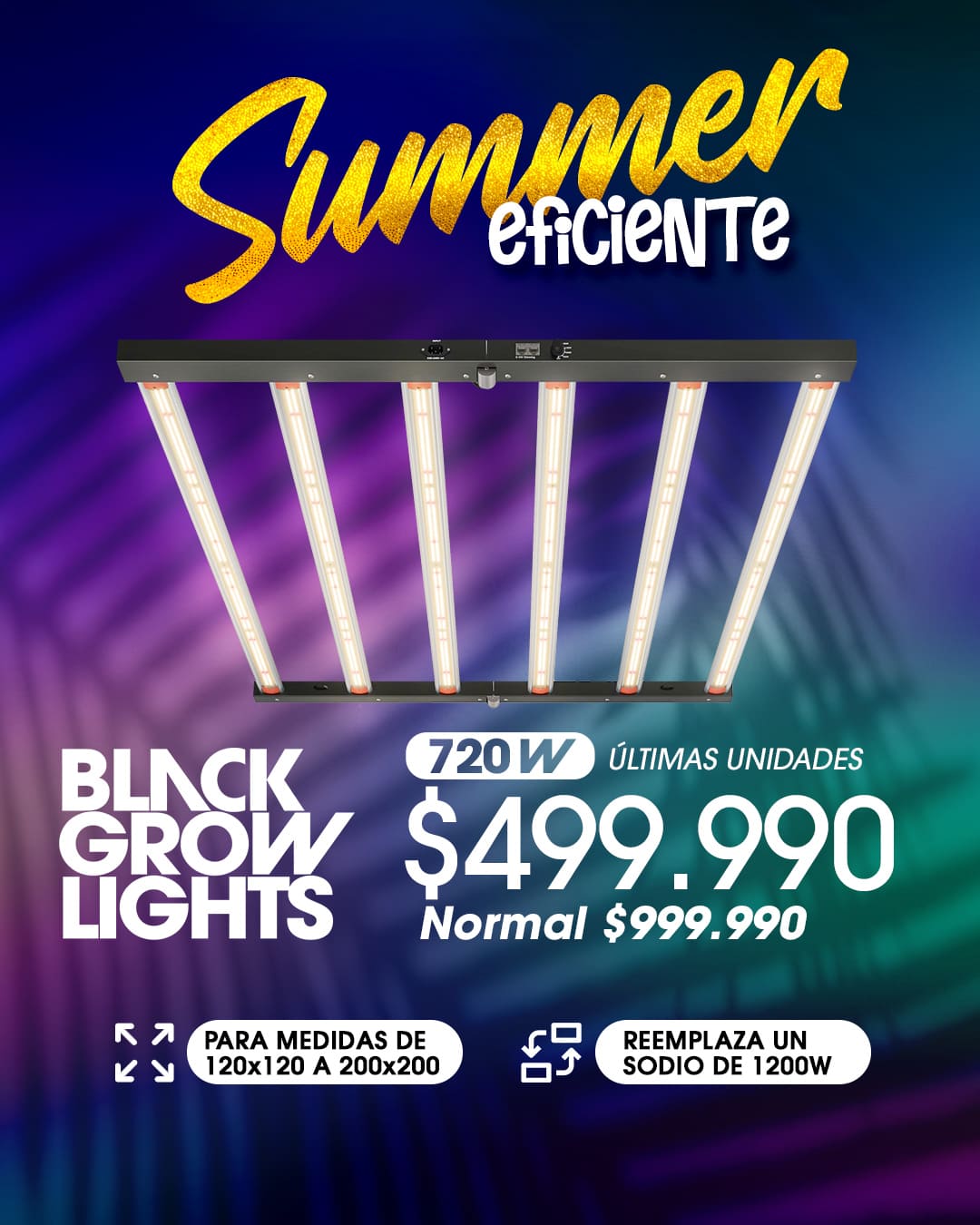 El éxito de un cultivo indoor serio depende en gran parte de la calidad de luz. En este caso, las Black Grow Lights 720W trabajan con una combinación estratégica de chips LED de 3500K y 660nm, cubriendo el espectro necesario para un desarrollo saludable en todo el ciclo.